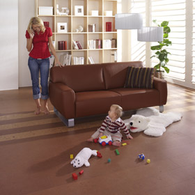 The colour red brings happiness and joie de vivre. It promotes energy and activity. One basic rule of interior design: “warm shades of red make for a cosy ambience”, which explains why so many home-owners and home-improvers choose cork “glueless” floating parquet with the elegant look of natural stone or tiles.